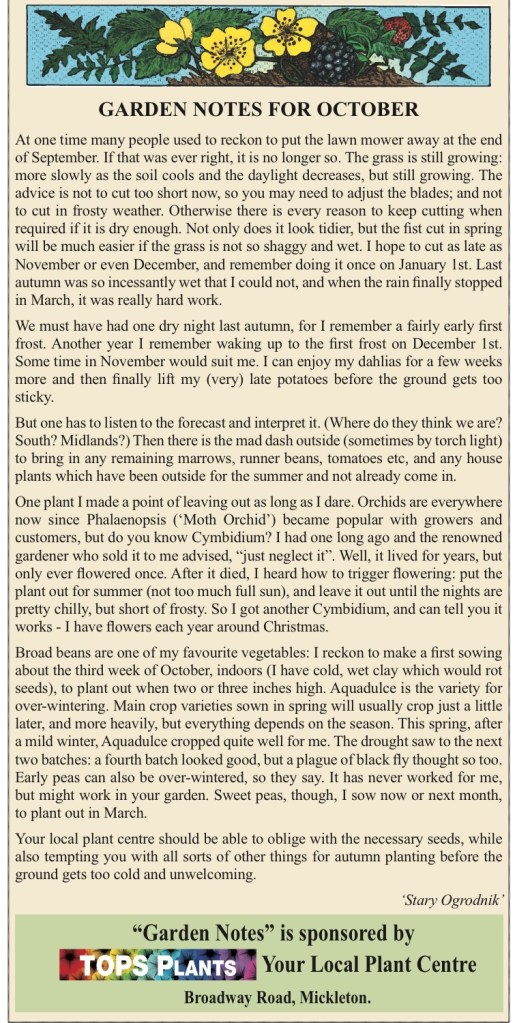 Here’s our October “Garden Notes” column which we’re pleased to sponsor in one of our local community magazines, the Chipping Campden Bulletin.