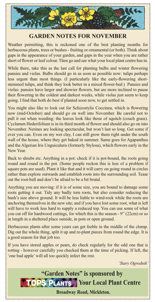 Here’s our November “Garden Notes” column which we’re pleased to sponsor in one of our local community magazines, the Chipping Campden Bulletin.